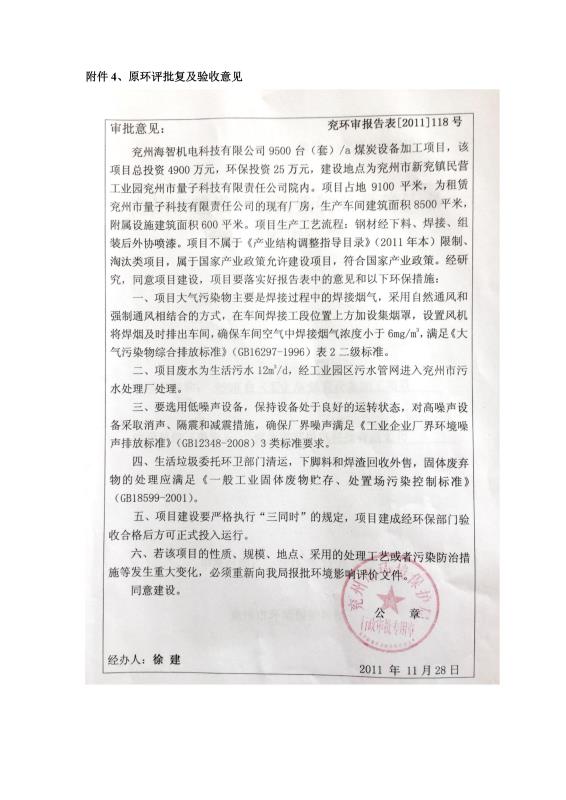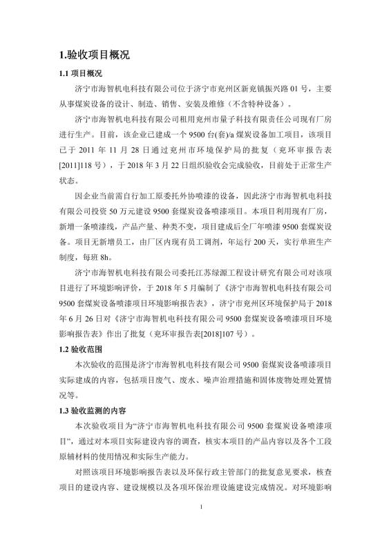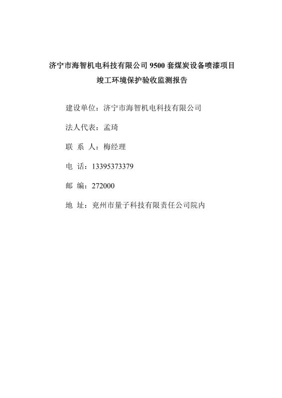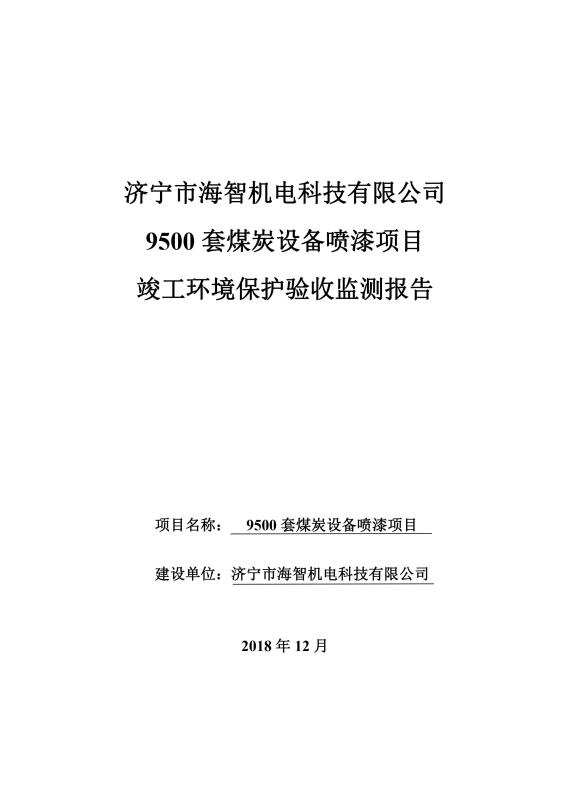 > 9500套煤炭設(shè)備噴漆項(xiàng)目竣工環(huán)境保護(hù)驗(yàn)收監(jiān)測(cè)報(bào)告