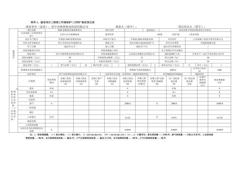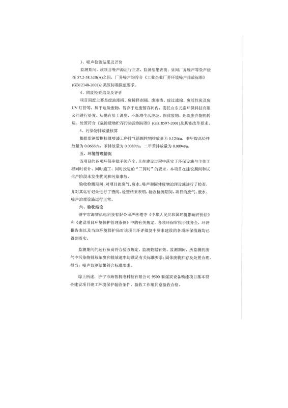 9500套煤炭設(shè)備噴漆項(xiàng)目竣工環(huán)境保護(hù)驗(yàn)收監(jiān)測(cè)報(bào)告
